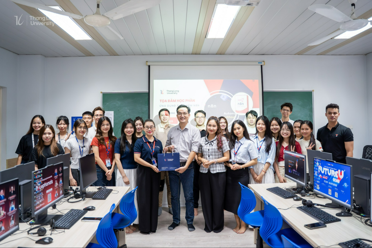 Chiều ngày 11.10.2025, tại Trường Đại học Thăng Long, Bộ môn Quản trị Kinh doanh – Marketing đã tổ chức thành công buổi tọa đàm học phần với chủ đề “Ứng dụng phần mềm N8N cho học viên cao học và sinh viên”.